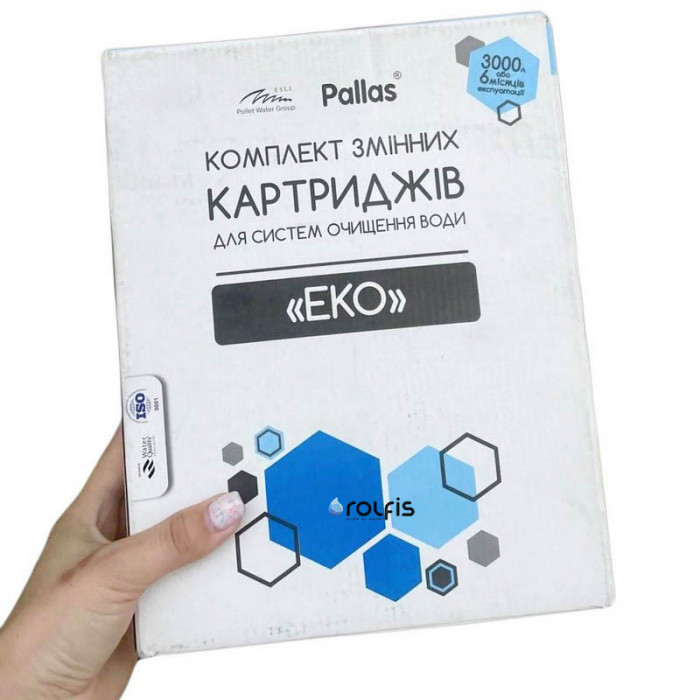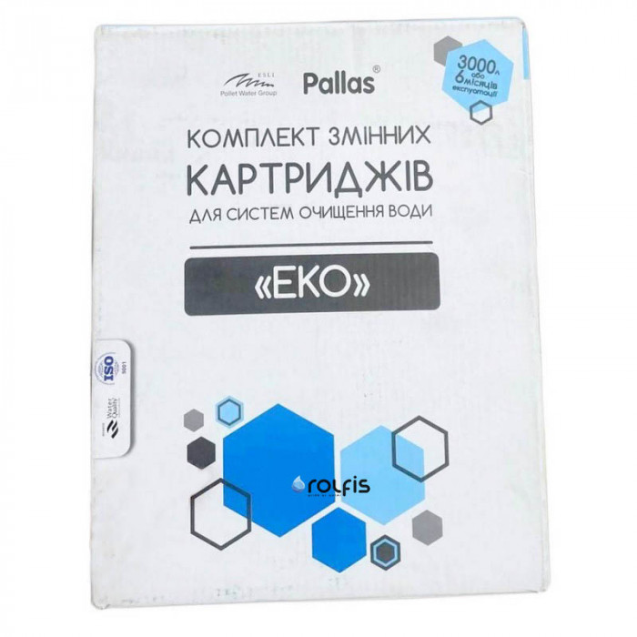 Комплект сменных картриджей Pallas "ЕКО" FLTKS4 (механика, уголь гранулированный, механика) три сменных картриджа для проточного фильтра или системы обратного осмоса. Данный комплект подойдет к любому фильтру на основе обратного осмоса c колбами размером Slim 10. Такой комплект очистит воду от механических примесей, хлора и органических примесей.