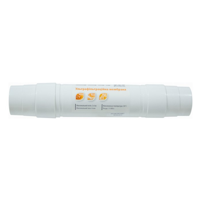 - Ультрафильтрационная мембрана (UF-11), Ресурс: 11000 л. (не более 1 года). Удаляет практически все органические загрязнители (тригалометаны и пр.), а также растворенные в воде посторонние жидкости, соли тяжелых металлов, железо, ртуть, мышьяк, марганец и т.д. Материал мембраны – трубчатый композит. Диаметр отверстий составляет 0,01 мкм, что в 20 раз меньше размера вирусов и в 400 раз – бактерий.