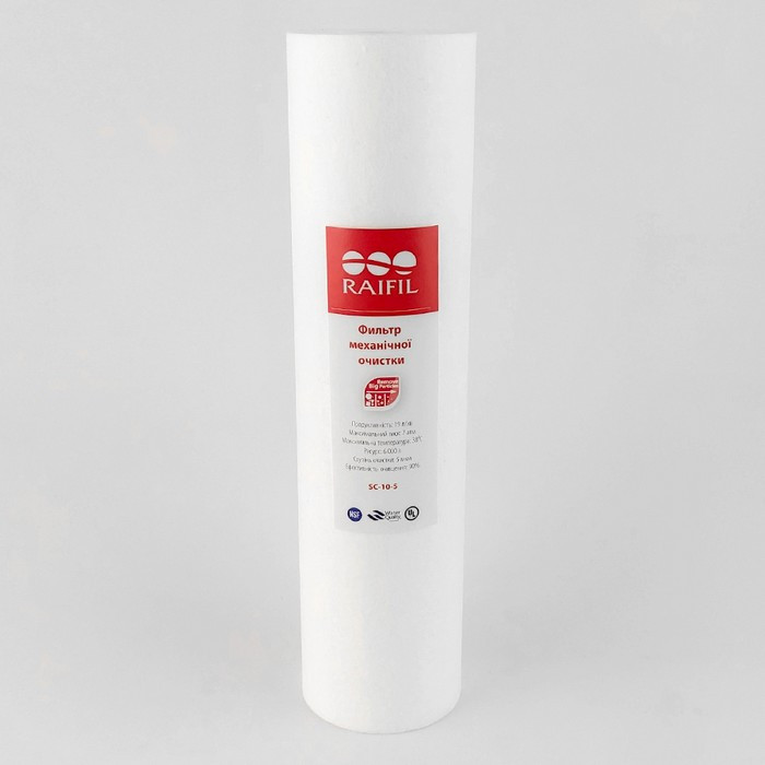 Raifil SC-10-5 - сменный фильтрующий элемент из полипропиленового волокна для систем обратного осмоса. Предназначен для очистки воды от нерастворимых механических примесей, устойчив к химикатам. Применяется в качестве предварительного фильтра.