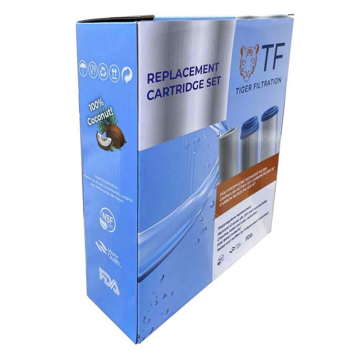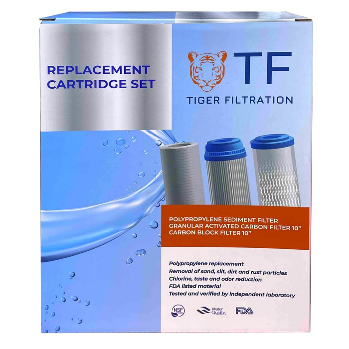 Картриджи задерживают песок, ржавчину, хлор и вредные хлорорганические примеси, продлевая срок службы основного элемента фильтра — мембраны. Вода последовательно проходит через 3 картриджа, каждый из которых удаляет определённые примеси. Комплект картриджей Tiger Filtration 1-2-3 для домашнего фильтра обратного осмоса предназначен для доочистки только холодной водопроводной воды.