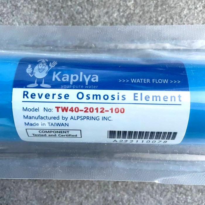 При выборе мембраны нужно обращать внимание на последние две цифры в название. Они означают производительность системы в сутки (36, 50, 75, 100, 125 галлон). Чем больше цифра, тем выше будет скорость фильтрации. Обратноосмотическая мембрана Kaplya - это качественная и надежная мембрана за адекватную стоимость.