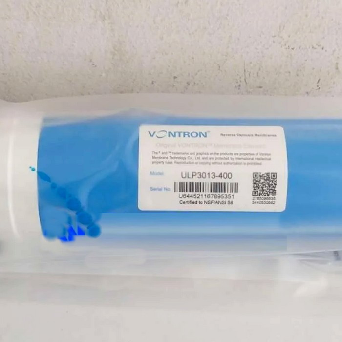 Мембрана Vontron ULP3013-400 имеет высокую селективность и продолжительный срок службы при условии регулярной замены картриджей предфильтрации. Мембраны Вонтрон с высокой производительностью пользуются большим спросом благодаря невысокой цене и надлежащему качеству, что заметно сокращает цену за 1 литр очищенной воды. Мембрана Вонтрон также поставляются с другой производительностью: 200, 240 и 300 галлон.