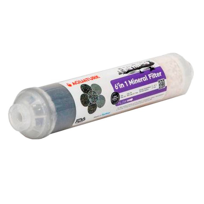 Минерализатор Aquaturk 6 в 1 содержит в себе 6 различных природным минеральных компонентов, которые способствуют насыщению воды, проходящей через данный картридж, нужными для организма человека минеральными соединениями, а также данный минерализатор корректирует щелочность воды, смещая его в сторону слабощелечной среды, которая наиболее подходит для потребления человеческому организму.