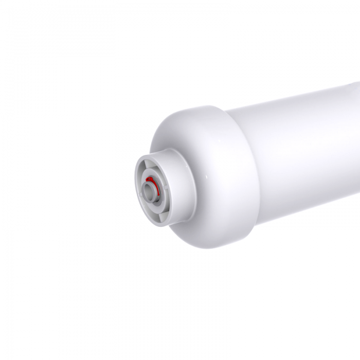 Постфильтр T33 удаляет неприятные привкус и запах, которые могут появится после длительного нахождения очищенной воды в накопительном баке. Вода проходит через фильтрующий элемент, и благодаря гранулированному углю, обеспечивается максимальное поглощение остаточных загрязнений и запахов.