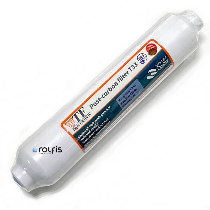 Посткарбон Tiger Filtration Т33 зачастую используется как пятая ступень большинства систем обратного осмоса, для улучшения органолептических свойств очищенной воды.