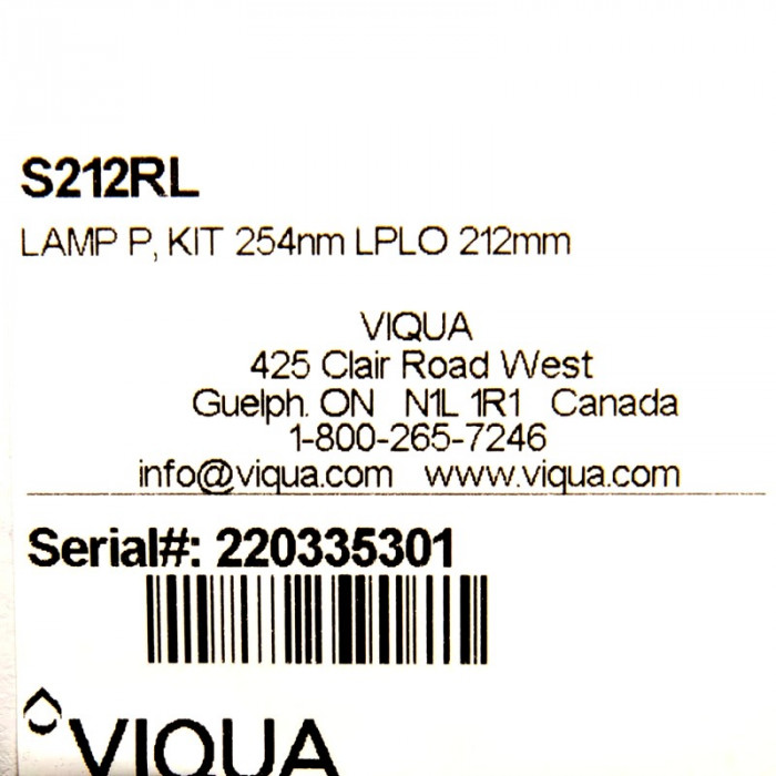 Сменная лампа Viqua Sterilight S212RL - сменная ультрафиолетовая лампа для систем уф-обеззараживания воды. Применяется в системах Sterilight: SC-1 (SC-1/2), SQ-PA. УФ-лампа Sterilight R-Can S212RL изготовлена из высококачественных материалов. Лампа работает в среднем диапазоне ультрафиолетового излучения с длинной волны 254 нм.
