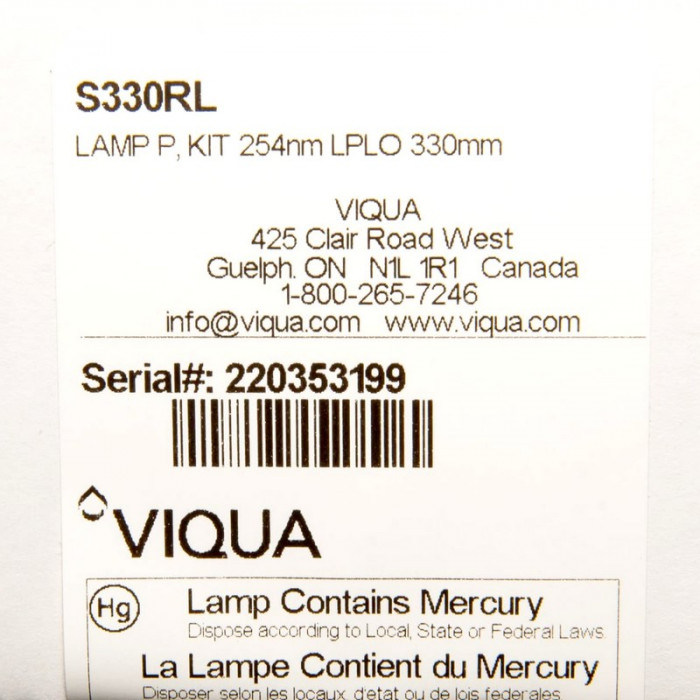 VIQUA S330RL - сменная лампа для ультрафиолетового обеззараживания воды. Лампа Виква S330RL подходит к системам SC4, S2Q-PA, SSM-17, S2Q, S2Q-GOLD. Ресурс 9000 часов (12 месяцев). В качестве источников УФ лучей применяют ртутные лампы, оболочки которых изготавливают из прозрачного для УФ лучей кварцевого стекла. Лампы отделены от воды кварцевым защитным футляром.