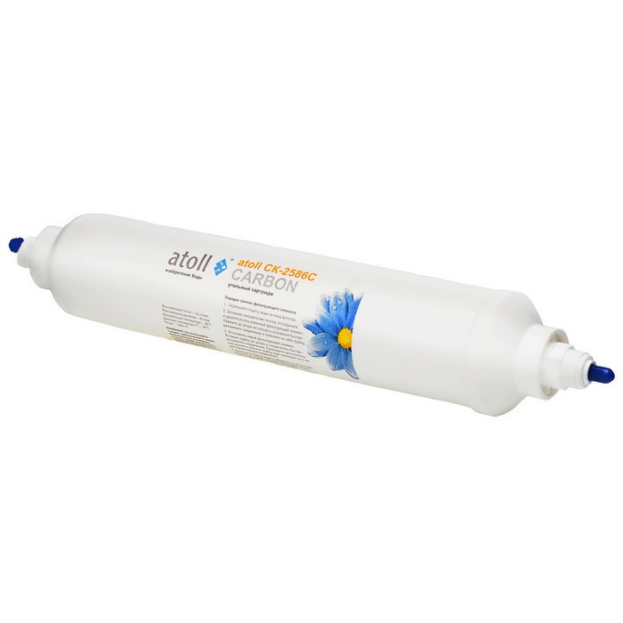 Постфильтр Atoll CK-2586C - картридж для улучешения вкуса и запаха очищенной воды после обратного осмоса Atoll. Срок службы картридж-постфильтра Atoll равен 12 месяцам при среднем потреблении воды.