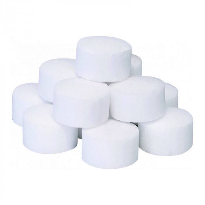 - таблетированная соль имеет гораздо большую площадь поверхности, чем такое же по весу количество обычной поваренной соли. Благодаря этому ее растворение происходит быстрее по сравнению с обычной солью;