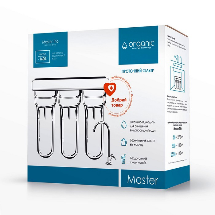 Фільтр Organic Master Trio має три ступені очищення води: