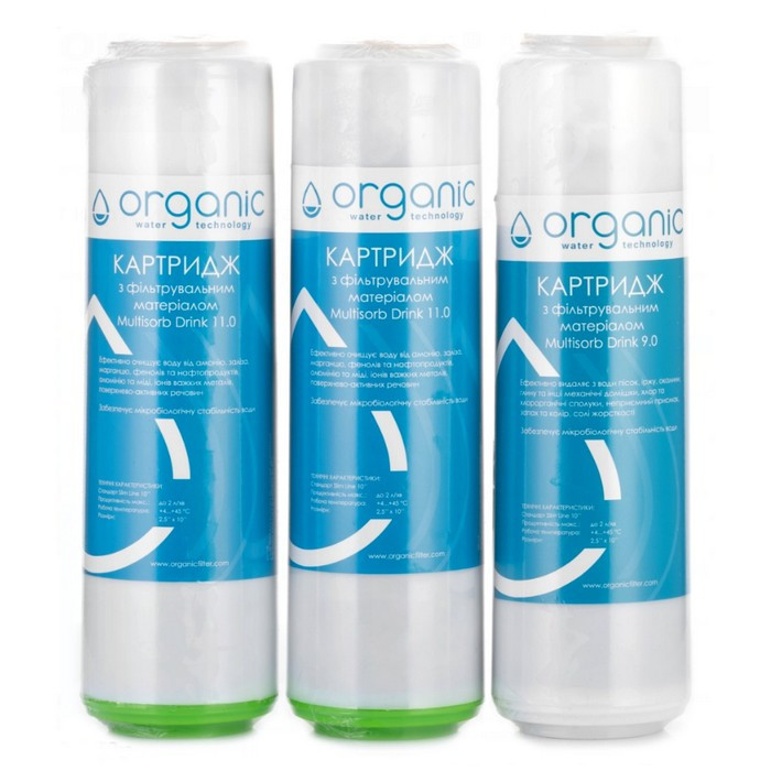 1. Картридж з фільтруючим матеріалом Multisorb 9. Суміш сорбційних та іонообмінних матеріалів забезпечує видалення активного хлору, покращення органолептичних властивостей очищеної води та її пом'якшення. Картридж усуває сторонній присмак та запах води.
