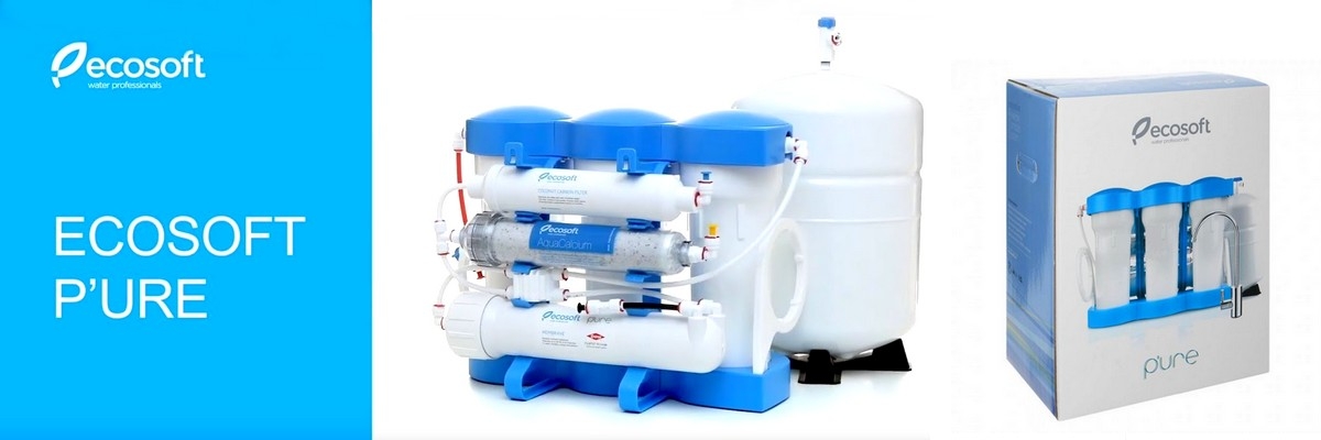 Система зворотного осмосу Ecosoft P'URE AquaCalcium має компактні розміри та стандартні колби Slim10, що дозволяє використовувати її в невеликих шафах під мийкою, а також доступність змінних витратних елементів. Купити осмос Ecosoft P'URE AquaCalcium – означає забезпечити свій будинок чистою водою з оптимальним мінеральним балансом та м'яким приємним смаком. Система зворотного осмосу PURE Aquacalcium поєднує у собі сучасний дизайн, ергономічність та зручність у обслуговуванні даної системи очищення води. Йдеться про спеціальну платформу-тримач не тільки самого фільтра, а й ключів для колб та корпусу мембрани – зручно та практично!