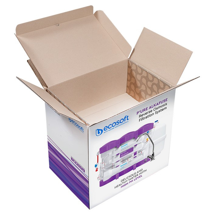 Фільтр зворотного осмосу Ecosoft P'URE Alkafuse MO675ALCPUREECO - інноваційна модель системи зворотного осмосу з мінералізатором Alkafuse - підвищує pH води, збагачує її мінералами магнію, картридж AquaGreen - захищає мембрану від надмірного забруднення і технологія AquaSpring - баланс мінералів кальцію і магнію робить воду освіжаюче смачною і корисною.