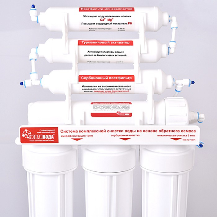 Фільтр осмос Нова Вода NW-RO702 - семиступінчата система зворотного осмосу. Фільтр якісно очищає воду до рівня питної, збагачує її корисними мінералами та активує її за допомогою біокерамічного картриджа.