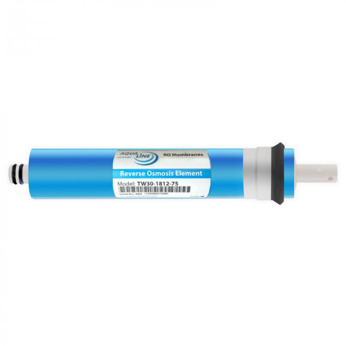 4. Мембрана зворотного осмосу виробництва Aqualine TW30-1812-50, продуктивністю 50 галон на добу (до 190 л на добу), на даному етапі вода піддається високому ступеню очищення – до 99,8;