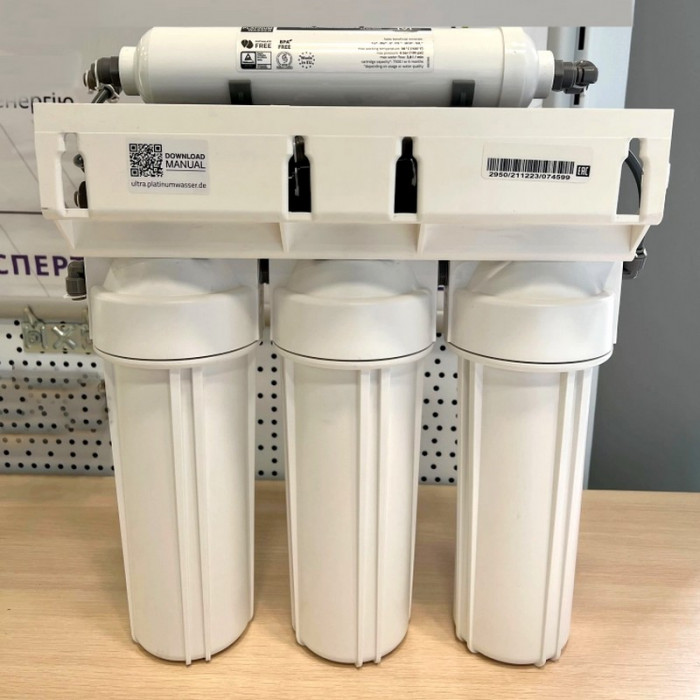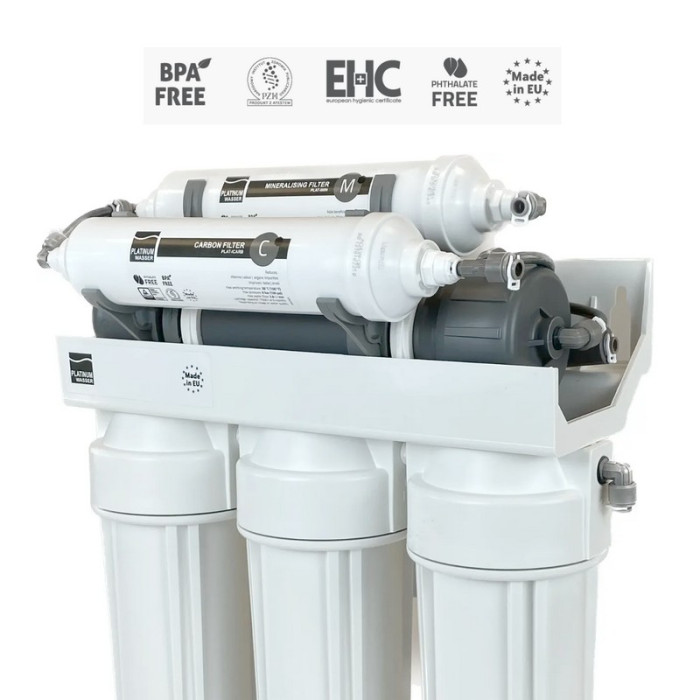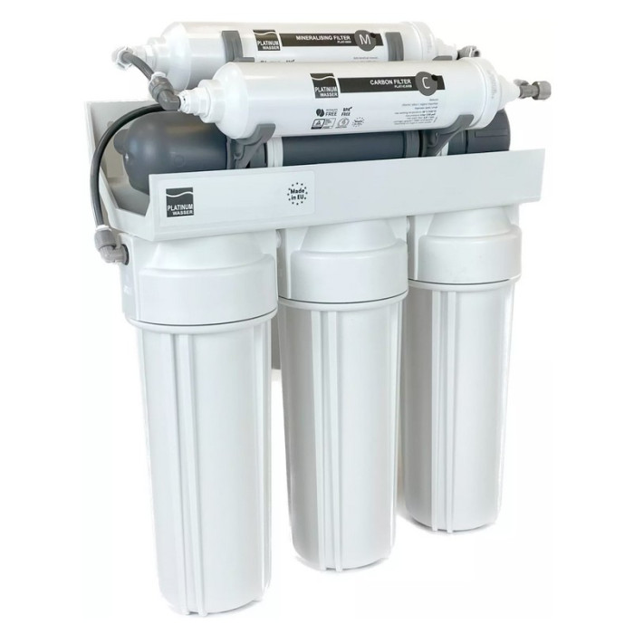 Platinum Wasser Ultra 6 - високоякісна система зворотного осмосу від німецького виробника. Система - шестиступінчаста з мінералізатором, встановлюється під мийку та виводиться на окремий невеликий подвійний кран для питної води (очищена та мінералізована).