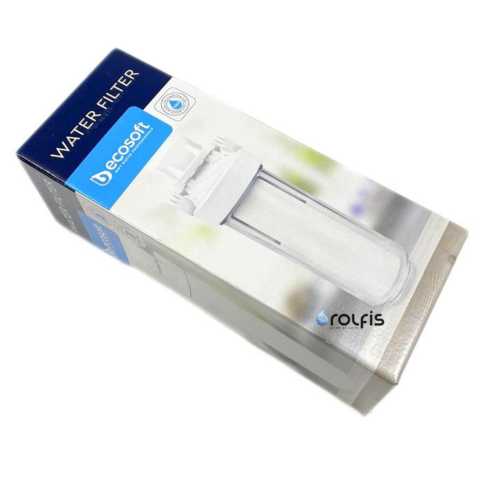 Фільтр механічного очищення високого тиску Ecosoft 1/2" (FPV12PECO) - 10" натрубний непрозорий фільтр для очищення холодної водопровідної води від механічних домішок, що знаходяться в ній. Фільтр складається з двох частин - кришка з латунним різьбленням для приєднання розміром 1/2" і білої міцної колби.