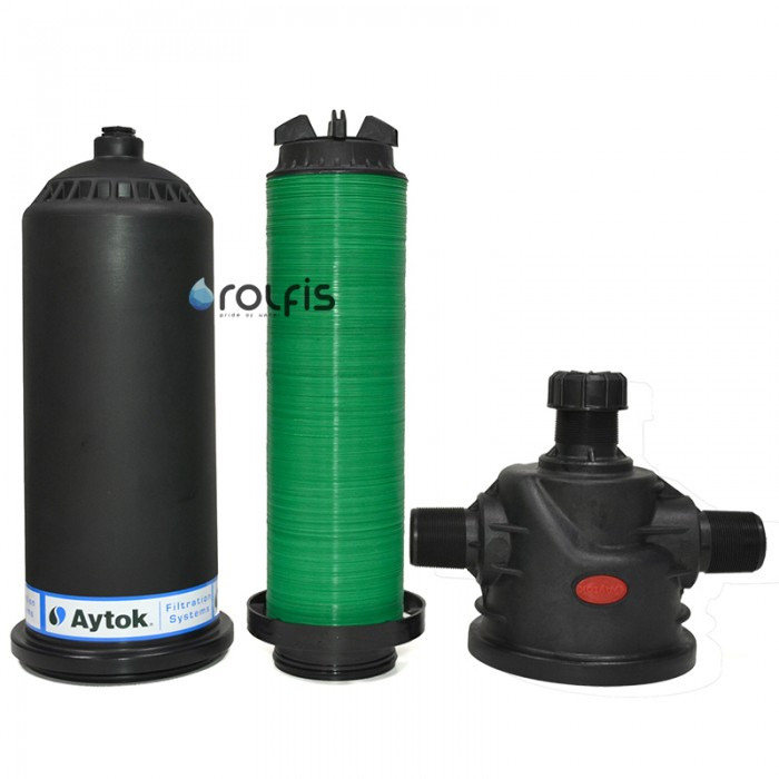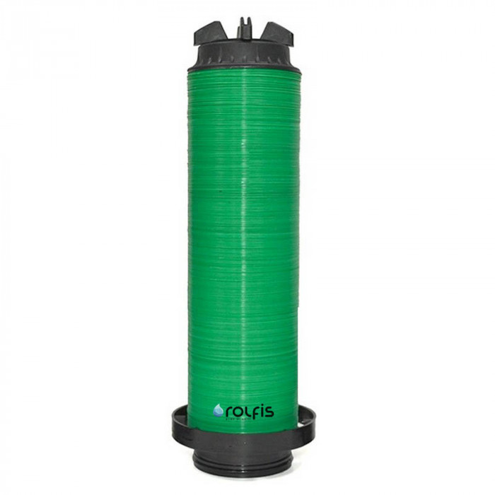 Картридж диск Aytok PSD 50 мікрон Довгий (D=13,5 см, H=51 см) - є фільтруючим елементом дискового фільтра, який підходить для моделей турецьких фільтрів ТМ Айток серії PSD2, PSD25 і PSD3 (діаметри відповідно: 2", 2, 5" і 3"). Картридж у зборі являють собою зелені диски, які зібрані та встановлені на змінному модулі, фіксуються затискною гайкою на торці картриджа. Кріплення пакета дисків для фільтра Aytok до його корпусу здійснюється за допомогою пластикового кожуха, здатного витримувати високі тиски. Для ущільнення кожуха та корпусу використовується сферична прокладка.
