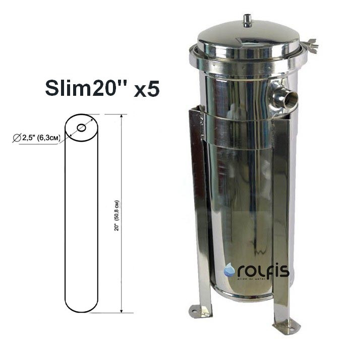 Механічний фільтр картриджного типу RF-SC-20x5 Ø1 1/2" (5 м3/год) - корпус фільтра виготовлений з нержавіючої сталі (корозійно - стійка сталь марки 304) і можуть бути використані для установки фільтрів - картриджів, типорозмір яких дорівнює 2, 5 х 20" Slim 20". У внутрішній частині корпусів розташовані стрижні - фіксатори з гайками, що дозволяє легко і просто проводити заміну фільтрів - картриджів. Всі частини корпусів за винятком гумових кільцевих прокладок виготовлені з нержавіючої сталі.