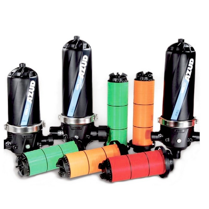 Внутрішня частина AZUD LONG (100-400 micron) є фільтруючим елементом дискового фільтра. Він являє собою пакет стислих полімерних дисків, що мають внутрішній отвір та двосторонні поглиблення. Глибина та ширина цих насічок визначає поріг фільтрації дискового елемента. Великі суспензії відсіюються на зовнішньому контурі стиснутих дисків, а дрібніші затримуються між дисками. Таким чином відбувається як поверхнева, так і об'ємна фільтрація. У системах з ручним промиванням диски витягуються з фільтр-елемента і промиваються вручну. Пакет дисків кріпиться до корпусу фільтра і закривається кожухом із пластику, здатного витримувати високий тиск. Кожух та корпус ущільнюються прокладкою. Диски мають різний ступінь очищення 100, 130, 200 і 400 та відповідний їм колір.
