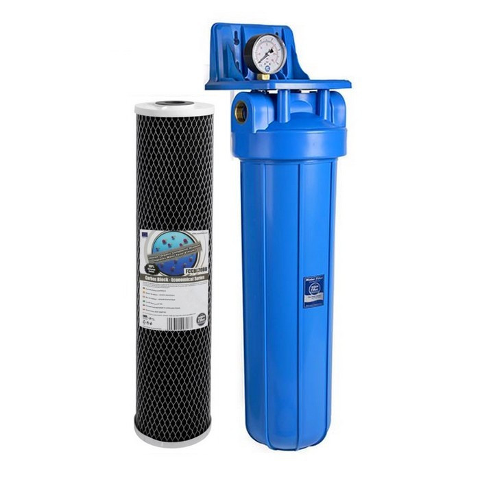 Магістарльний фільтр Big Blue FH20B1-B-WB 20" також оснащений повітряним клапаном, який дозволяє стравлювати повітря при заміні картриджа, і манометр, який контролює рівень забруднення фільтруючого 20 дюймового картриджа.