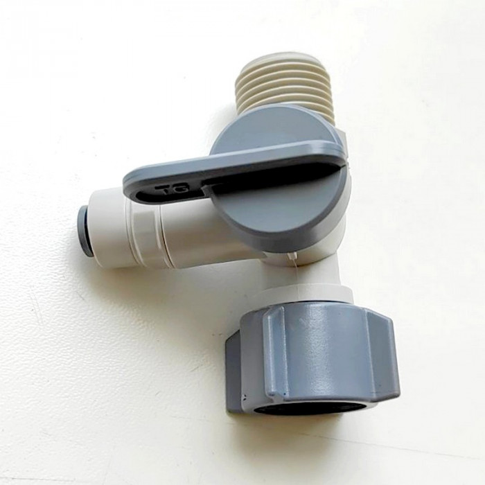 Адаптер для підключення ITiger 1832-A (різьблення зовнішня 1/2" - кульовий вентиль пластиковий трубка 1/4" - різьблення внутрішнє 1/2") - пластмасовий адаптер 1/2" з шаровим краном 1/4". Даний адаптер використовується для підключення фільтра зворотного осмосу або проточного фільтра до водопровідної магістралі діаметром труби 1/2 дюйма. Адаптер має з одного боку внутрішнє різьблення 1/2", з іншого - зовнішнє різьблення 1/2" і вихід під стандартний шланг 1/4".