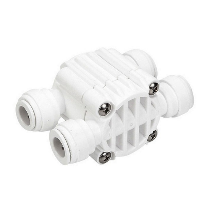 Чотириходовий клапан Organic ASV0606-Q 3/8" призначений для відключення системи при заповненні накопичувального бака фільтрованою водою і для включення системи зворотного осмосу навіть при найменшому споживанні води з бака. Клапан ASV0606-Q йде на швидкоз'ємному з'єднанні до шлангу. переважно у системах зворотного осмосу підвищеної продуктивності.