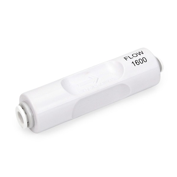 Обмежувач потоку FR-1600-Q використовується в системах зворотного осмосу з продуктивністю мембран 400GPD та 500GPD. Цифра 1600 означає об'єм води в мл, який обмежувач пропускає за 1 хвилину (мл/хвилину).