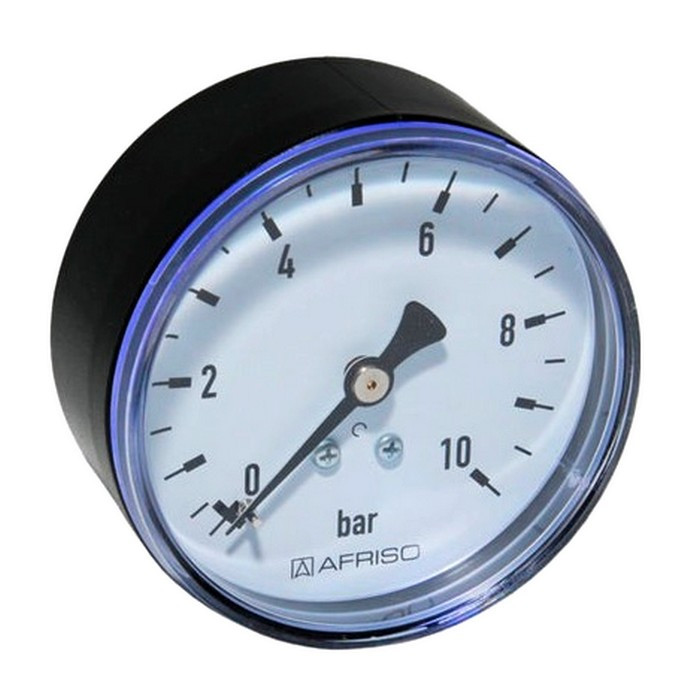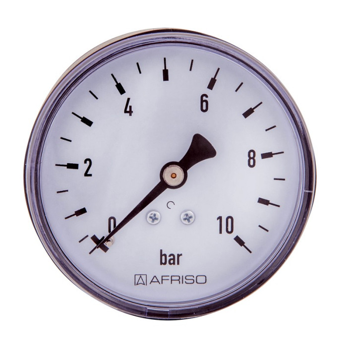 Манометр осьовий AFRISO RF 50 AX | 0-10 бар | 1/4" - Аксіальний манометр для вимірювання та індикації тиску в системі водопостачання, також застосовується для контролю значень редуктора знижуючого тиску. Манометри ТМ AFRISO з кращим співвідношенням ціна/якість та міцним корпусом.