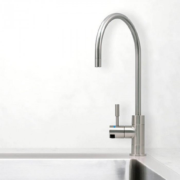 Facet NCPS88 Satin - стильний одинарний керамічний кран типу Hi-Tech Smart (з світлодіодним індикатором ресурсу), в матовому виконанні. Кран Satin Hi-Tech встановлюється в кухонну мийку або стільницю і служить для отримання чистої питної води незалежно від загального потоку води, що використовується в господарських цілях.