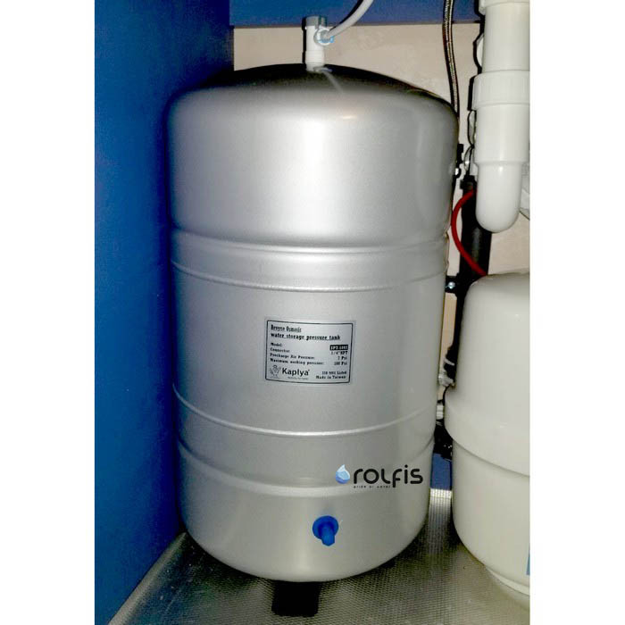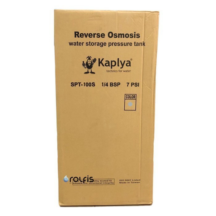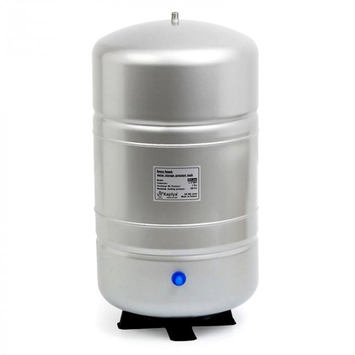 Накопичувальний бак Kaplya SPT-100S-14 - накопичувальна ємність із високоякісного металу для зберігання води, що подається системами зворотного осмосу підвищеної продуктивності. Має каучукову мембрану всередині ємності з водою, ніпель з нержавіючої сталі. Загальний об'єм бака становить 38 л, а робочий об'єм близько 28 л. Бак має "запечене" фарбування та якісний зварний шов.
