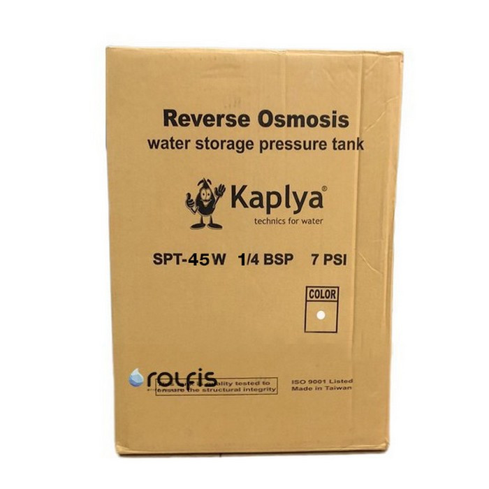 Kaplya SPT-45W - накопичувальний бак тайванського виробництва для систем зворотного осмосу. Найкраще співвідношення ціна/якість даного гідроакумулятора об'ємом 15 л (близько 12 л - чистої води) робить цей накопичувальний бак хітом продажів. Накопичувальний бак Kaplya SPT-45W-white, пластмасова підставка та якісне емалеве покриття і це все за невеликі гроші! Якщо вам необхідно купити недорогий бак для системи зворотного осмосу Kaplya SPT-45W - ідеальний варіант!