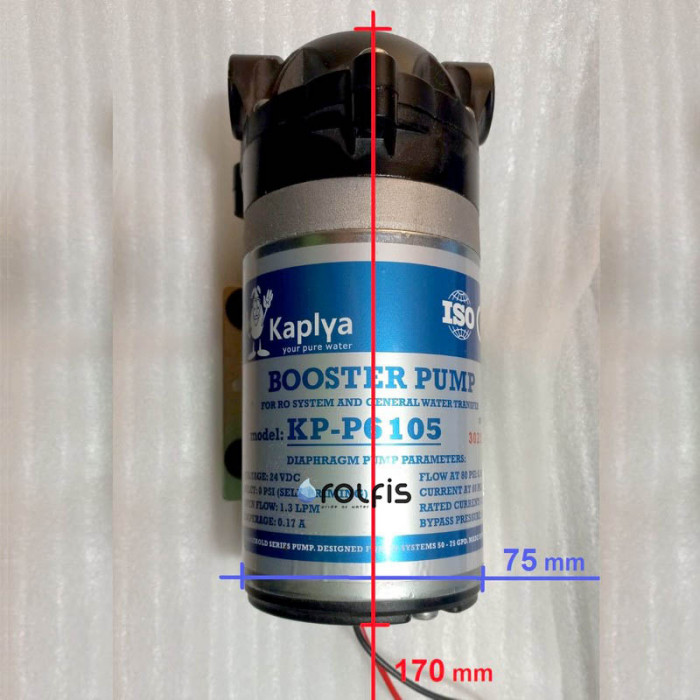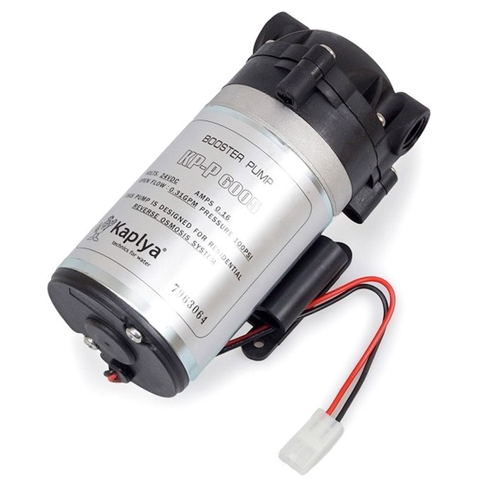 Насос для зворотного осмосу Kaplya P6005 - змінний насос дляпідвищення тиску у зборі Kaplya P6005-S, а також для інших систем підвищення тиску з блоком живлення на 24 V. Помпа працює безшумно і споживає мінімум електроенергії.