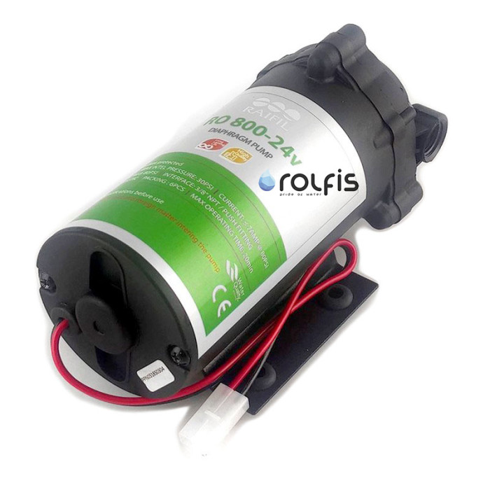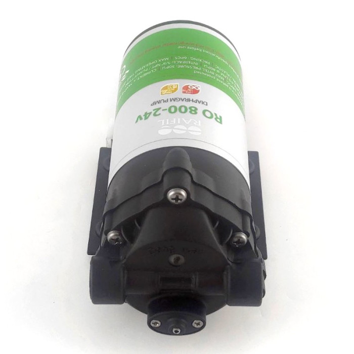 Насос RAIFIL NEW (800G) без трансформатора - насос (мотор), що підвищує тиск води в системах зворотного осмосу з продуктивністю 800 галон. Насос використовується, якщо вхідний тиск води низький (менше 2 атм). З цим завданням успішно справляється насос Raifil New 800G без трансформатора, який забезпечує стабільний тиск води.