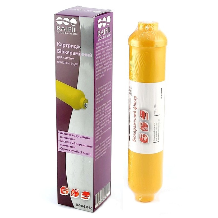 Структуруючий біокерамічний картридж Raifil IL-10Y-BIO-EZ - картридж-структуризатор для системи зворотного осмосу. Картридж-структуризатор містить суміш мінеральних гранул природного походження. Він структурує воду та коригує рівень рН.