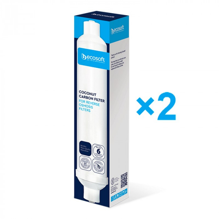 Вугільний постфільтр Ecosoft. П'ятий ступінь фільтрації в системі зворотного осмосу, коригує смак і запах води, що надходить із накопичувального бака - 2 шт.