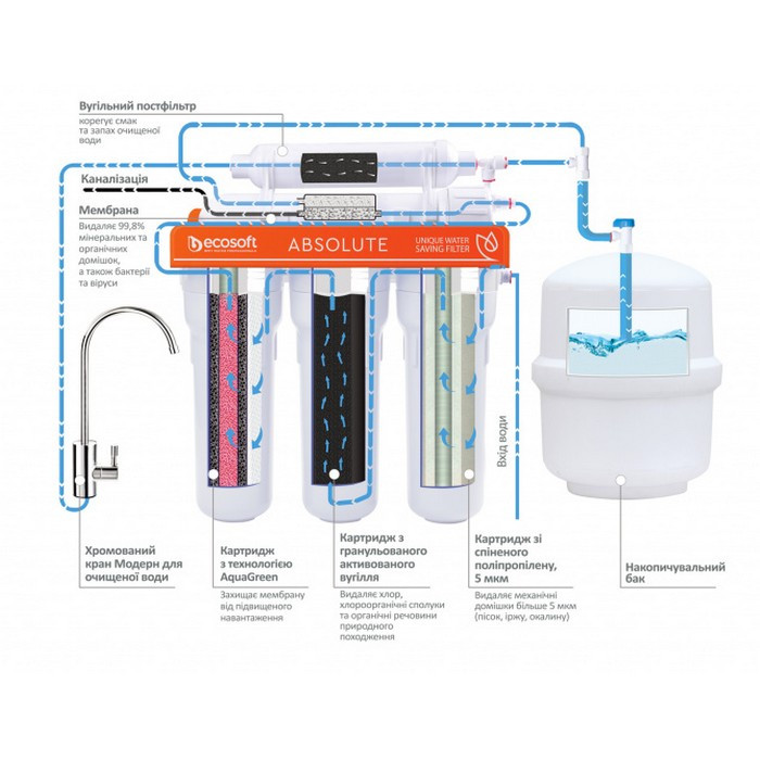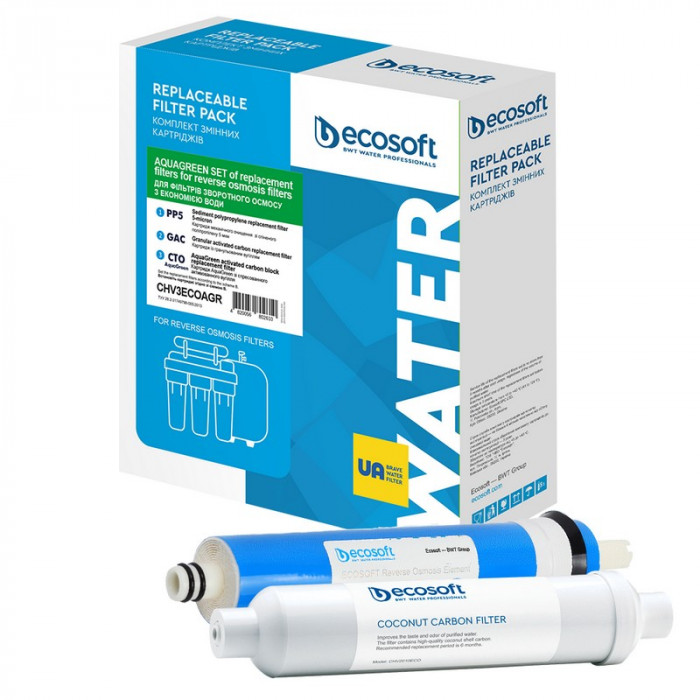 Річний запас картриджів для фільтра зворотного осмосу Ecosoft Absolute (без мінералізатора) – річний запас картриджів для фільтра зворотного осмосу Ecosoft Absolute (без мінералізатора) сумісний з усіма попередніми варіаціями цієї моделі фільтра.