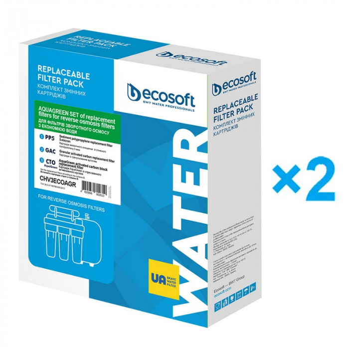 Покращений набір трьох картриджів Ecosoft 1-2-3 CHV3ECOAGR. Попереднє очищення води перед подачею на мембрану зворотного осмосу - 2 шт.