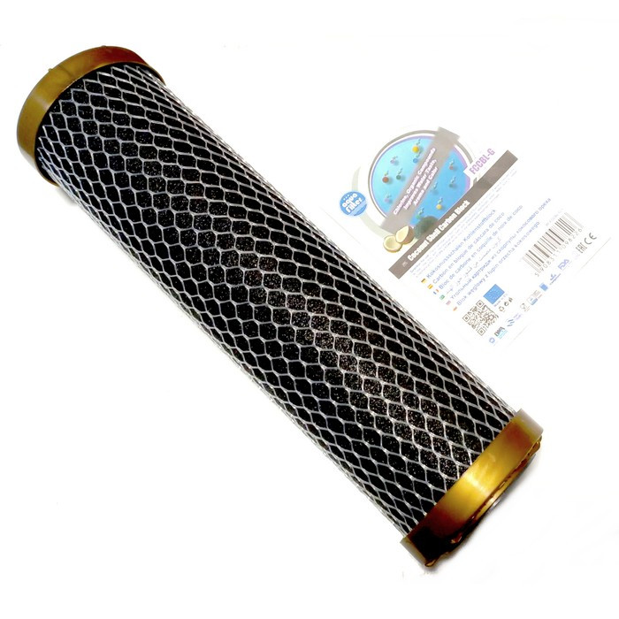 Картридж вугільний Aquafilter FCCBL-G (100% кокосове вугілля) - вугільний брикет із 100% кокосового активованого вугілля. Використовується для очищення води від хлору, важких металів та органічних сполук типу фінол та інші. Пресований картридж Aquafilter FCCBL-G має сертифіковану NSF.