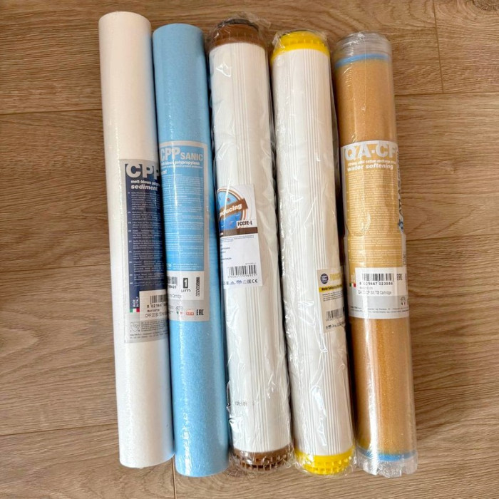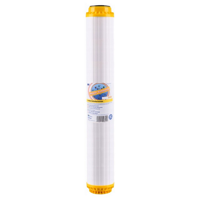 Пом'якшувальний картридж оснащений запобіжним фільтром, що запобігає проникненню назовні іонообмінної смоли. Такий картридж використовують у колбах типу Slim 20" (20х2,5").