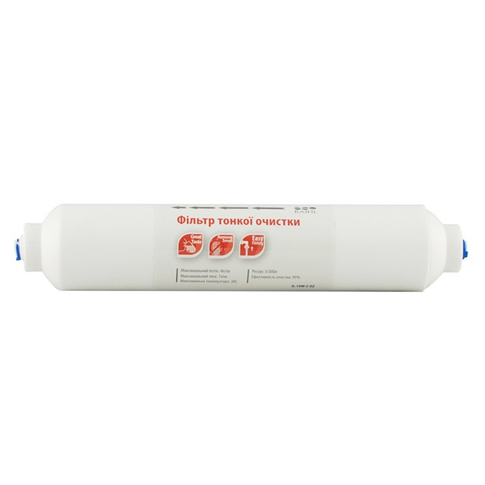 Raifil IL-10W-C-EZ - вугільний постфільтр для доочищення води на різьбовому з'єднанні (або на швидкознімному). Покращує смак та запах відфільтрованої води.
