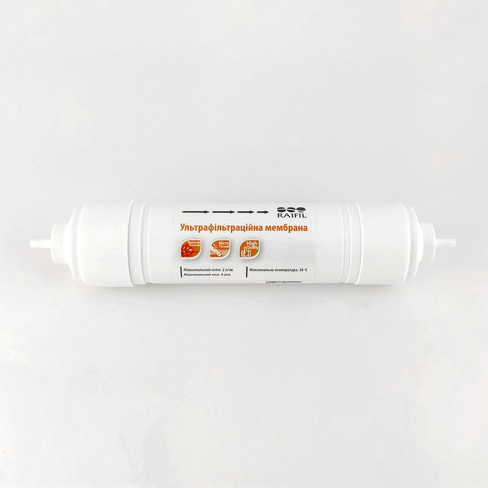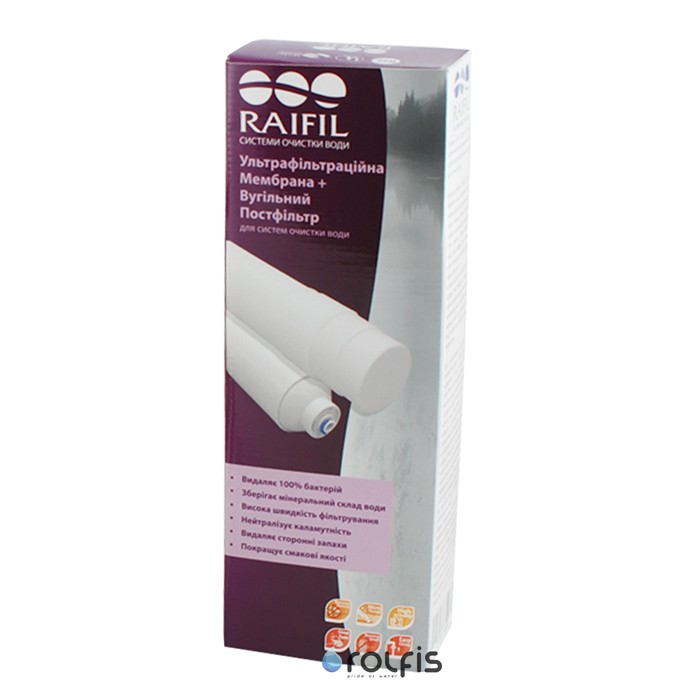 Ультрафільтраційна мембрана Raifil UF-11 встановлена у проточному фільтрі Raifil NOVO5, четвертим ступенем очищення води (тонке очищення). Завдяки мембрані Райфіл, вода, проходячи через неї, очищається від дрібних нерозчинних частинок, а також від великих мікробіологічних організмів присутніх у воді. Постфільтр Raifil IL-10W-C встановлений на проточному фільтрі Raifil NOVO5 п'ятим ступенем очищення води.