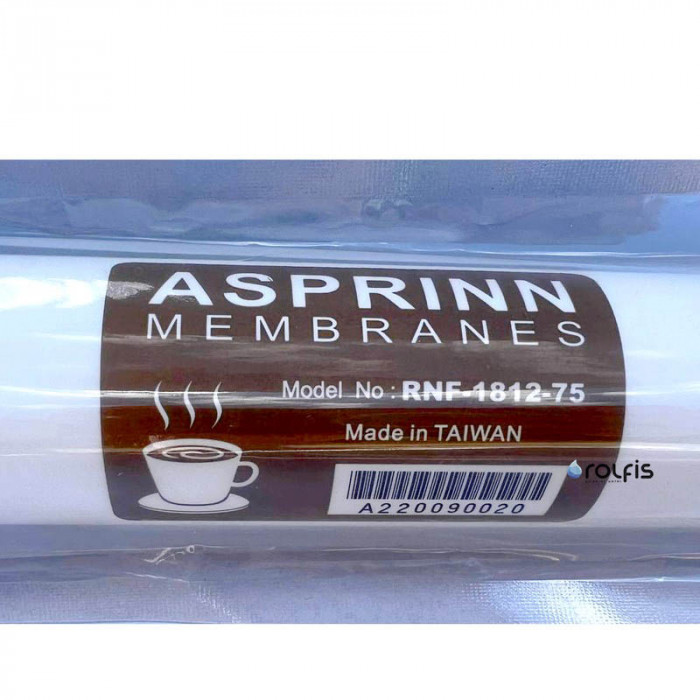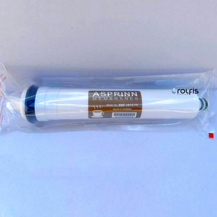 Asprinn RNF-1812-75 - це змінний мембранний елемент для системи зворотного осмосу і нанофільтрації. Дана мембрана ідеально підходить для очищення води для приготування кави! Спеціалізована мембрана якісно очищає воду, зберігаючи баланс корисних елементів особливої пропорції. Очищена цією мембраною вода робить смак напою з кавових зерен насиченим та неповторним.