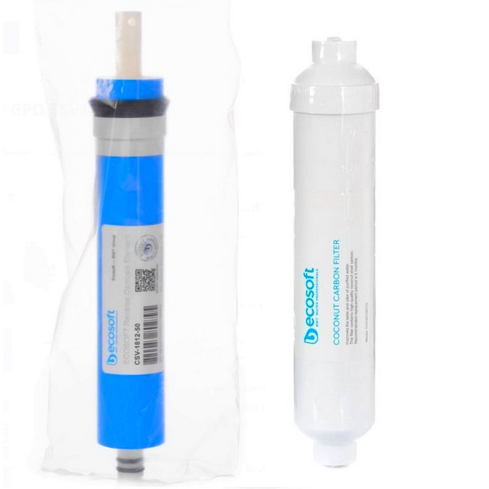 Вугільний постфільтр Ecosoft (CHV2010ECOPKG) - картридж для фінішного доочищення води після мембрани зворотного осмосу. Це циліндричний корпус, усередині якого знаходиться високоякісне активоване вугілля зі шкаралупи кокосових горіхів. Він коригує смак та запах очищеної води, надаючи їй вишуканий солодкуватий присмак.