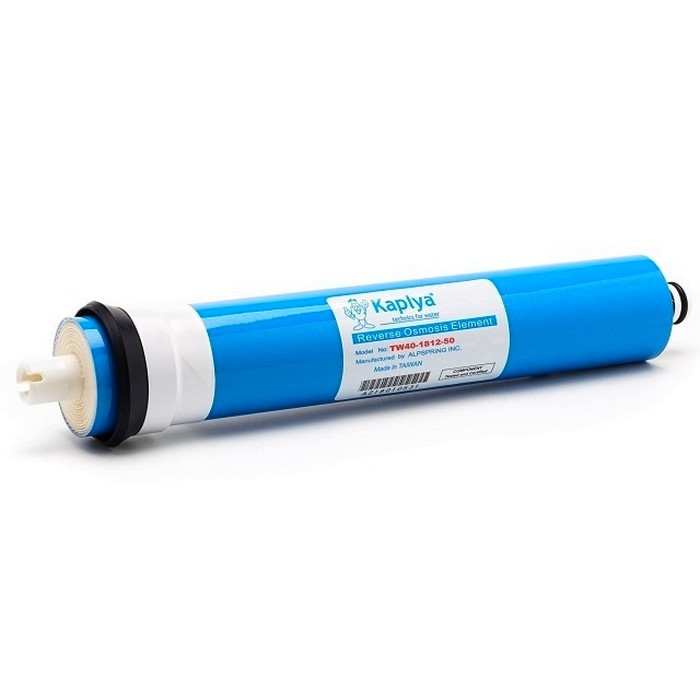 Kaplya TW40-1812-50 – це змінний мембранний елемент у системах зворотного осмосу. Мембрана очищує до 98% забруднень. Пори в мембрані дуже дрібні, завдяки цьому через неї проходять лише молекули води та молекули кисню. Всі інші забруднення автоматично змиваються у дренаж (каналізацію).