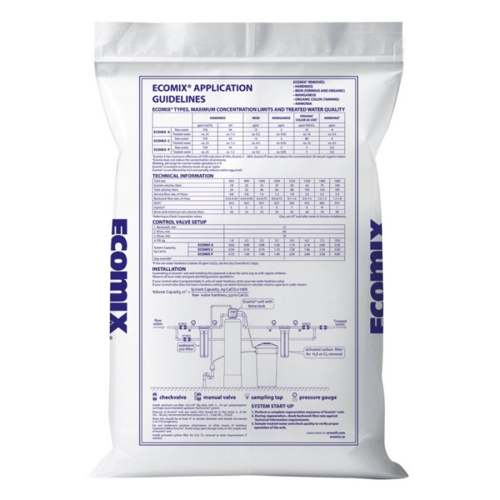 ECOSOFT Ecomix А (ECOMIXA12) - фільтруюче іонообмінне завантаження для комплексного очищення води, яке застосовується в побутовому та промисловому обладнанні водоочищення.